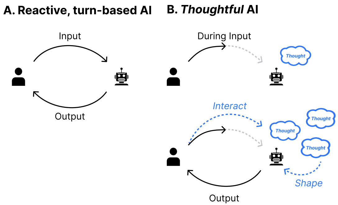 Examples include: agents that can proactively engage in group conversations by modeling human-like motivations (Inner Thoughts), multimodal agents that stay in sync with real-world context (Human I/O), real-time AI that dynamically generates visuals to complement speech (Visual Captions), and a document interface that lets anyone author generative videos by simply writing (Doki).